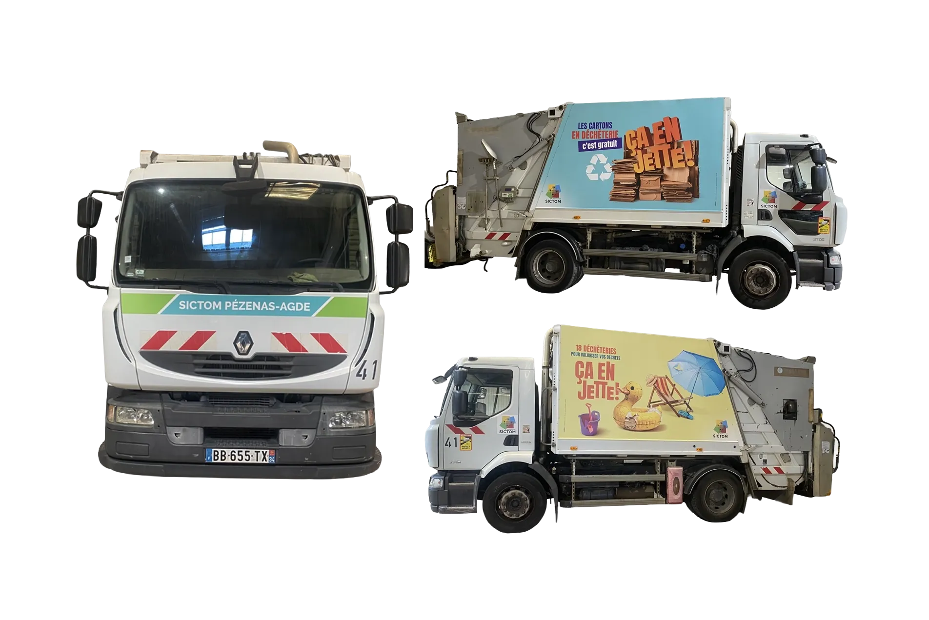 Studio Caractère a accompagné Sictom dans la décoration de leurs camions poubelles. Après avoir retiré les anciens adhésifs, nous avons assuré la pose des nouveaux adhésifs imprimés et personnalisés par nos soins.