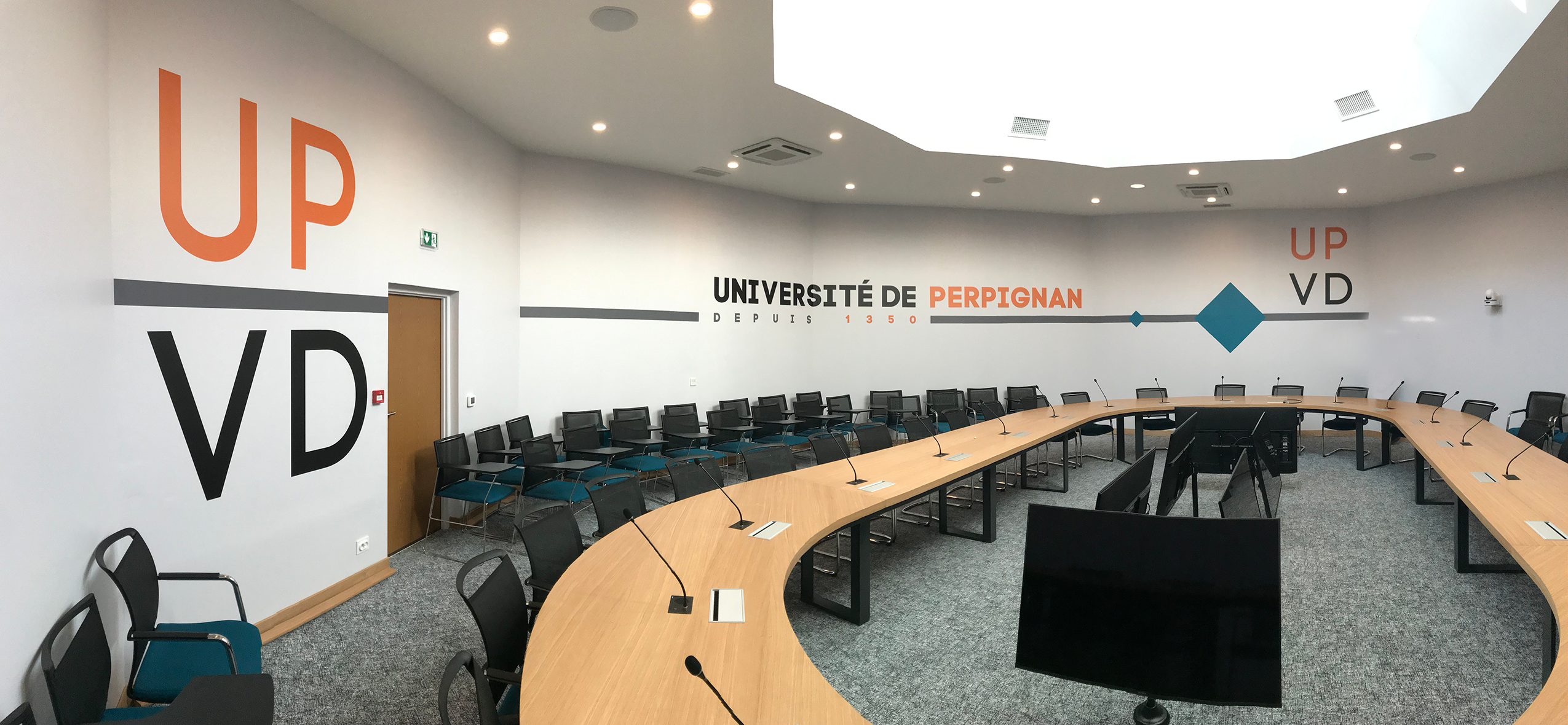 Décoration salle de réunion en adhésif et tôle dibond en relief